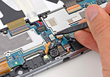 Инженер нашего сервис центра проводит работу: заменяет сломанную деталь исправной заводской запчастью